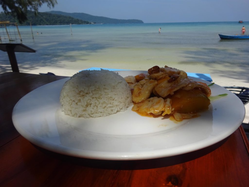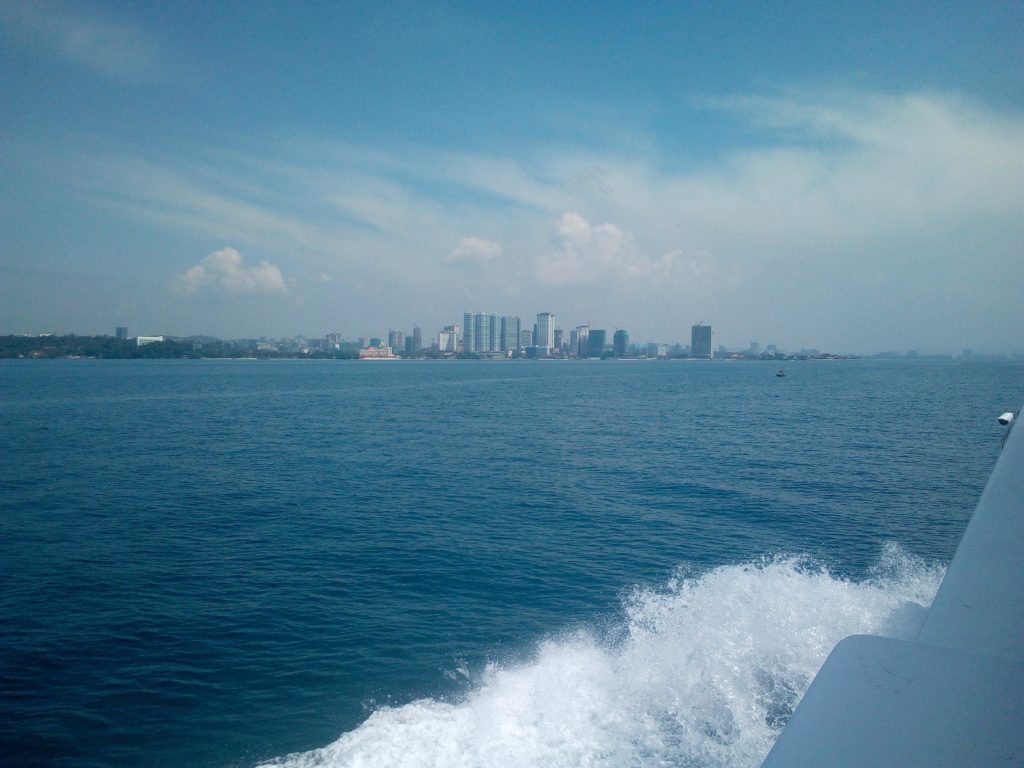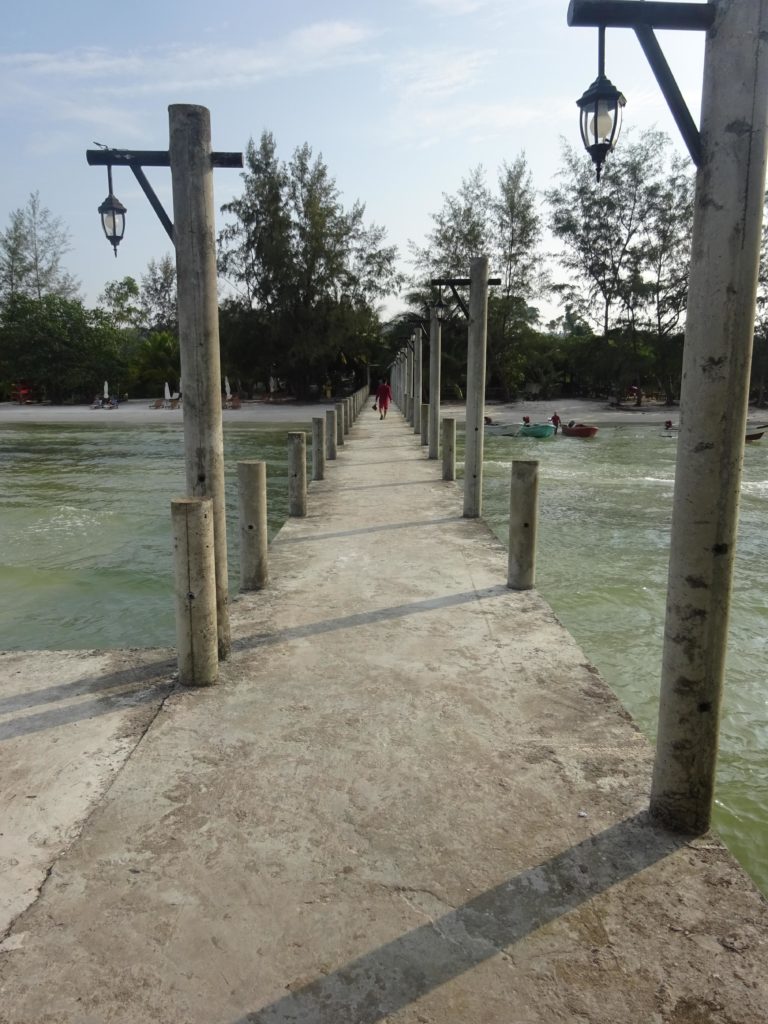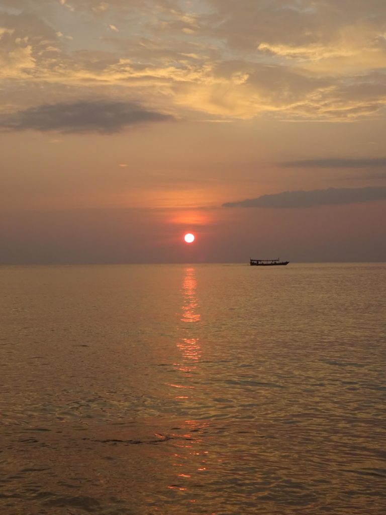 Malgré ces quelques désagréments, j’ai pu profiter pleinement de la douceur de la vie sur l’île au cours de mon séjour. Lors du retour à Sihanoukville, le ferry s’est complètement arrêté au beau milieu de la traversée, créant une petite panique, surtout chez les touristes chinois qui se sont aussitôt mis à enfiler leur gilet de sauvetage. Excepté un qui a plutôt choisi de sortir sa canne à pêche et de lancer son hameçon depuis le ferry. Heureusement cette petite pause a été de courte durée et nous avons pu repartir même si la puissance du bateau semblait bien diminuée. En se rapprochant de Sihanoukville par la mer, on se rend encore mieux compte de la multitude de construction en cours. Il y a autant de grues que d’immeubles construits.