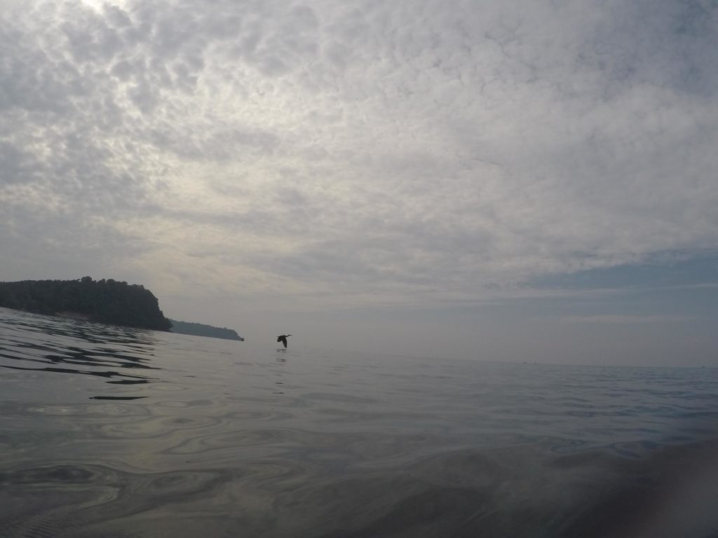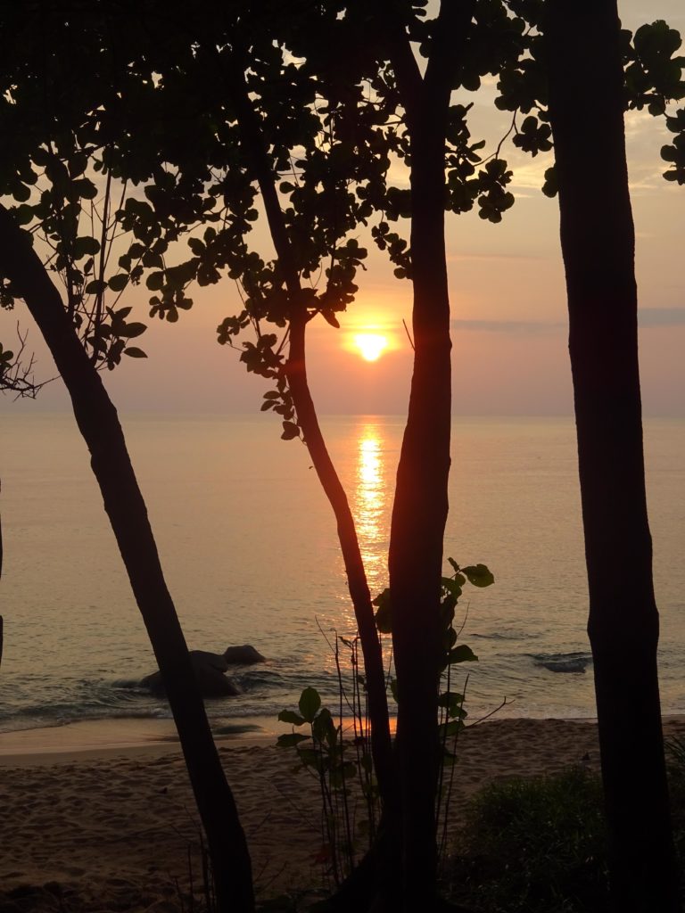 Ce n’est cependant pas encore le moment de se reposer pour moi. J’ai une heure de marche pour atteindre mon hébergement à Sunset Beach, une plage reculée réputée pour ses couchers de soleil. Je longe la plage principale longue de plus de 2 km où se succèdent resort de luxe et bungalows plus sobres. Les touristes se prélassent entre leur logement et la plage. L’atmosphère est paisible, le temps a l’air de s’être arrêté. Je m’enfonce ensuite dans la jungle pour rejoindre l’autre côté de l’île. Le changement de décor et d’ambiance est brutal lorsqu’on quitte la plage. Avec les cris stridents des insectes, l’atmosphère y est plus inquiétante. Il vaut mieux s’équiper de répulsif anti-moustique ici. Il me semble distinguer des cris de singe parmi le bruit ambiant mais je ne parviens pas à les apercevoir.