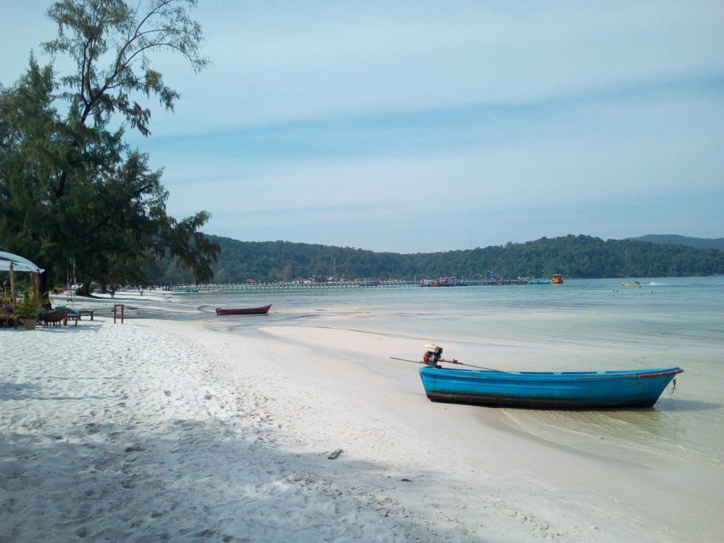 A 16h, j’arrive enfin sur l’île de Koh Rong Sanloem. Le décor est digne de Koh-Lanta avec la civilisation en plus. Ce n’est d’ailleurs pas pour rien, 2 saisons de l’émission ont été tournées sur l’île voisine de Koh Rong. J’ai l’impression de rentrer dans une bulle dès que je pose mon premier pied sur la jetée. Là-bas, pas de chauffeur de tuk tuk pour m’accoster à chaque pas que je fais, de toute façon il n’y a aucun transport sur l’île.