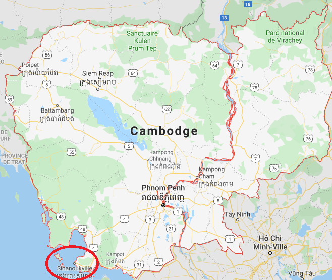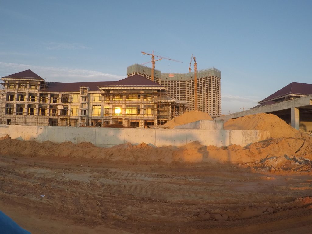 Mais une telle destination ça se mérite. Depuis Battambang, pas moins de 15 heures de bus m’attendent pour rejoindre Sihanoukville, lieu de départ des ferrys. J’ai pu goûter au plaisir des bus de nuit où l’on doit partager une couchette plus petite qu’un lit simple avec un total inconnu. Après ce petit trajet des plus agréables, me voilà à Sihanoukville. J’avais entendu dire que cette ville n’était pas très jolie à visiter, mais c’est encore pire que ce que je pensais. Toute la ville est en travaux ! Cette cité balnéaire auparavant assez paisible a complétement changé de visage depuis trois ans du fait d’investissements chinois massifs qui veulent en faire une destination touristique de luxe. Les conséquences de ce développement précipité : de la poussière partout, des ouvriers travaillant dans des conditions exécrables, des cambodgiens chassés de leurs habitations et un environnement complètement délaissé.
