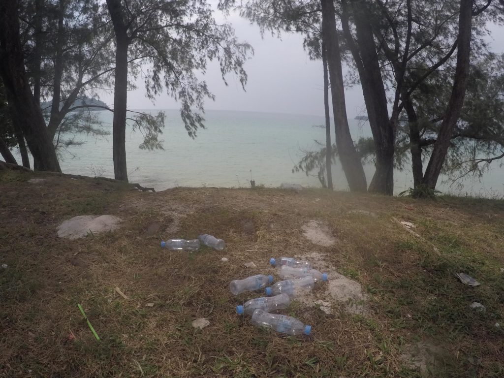Ces jolies photos ne reflètent cependant pas toute la réalité de l’île. Ce paradis de façade cache quelques vérités plus désagréables. Comme le reste du Cambodge, Koh Rong Sanloem n’est pas épargné par le problème des déchets. Bien que certains hôtels fassent des efforts en nettoyant quotidiennement leur section de plage, cette attitude est loin d’être généralisée. A certains endroits, la pollution visuelle est telle que certains touristes prennent eux-mêmes les choses en main en remplissant des sacs de déchets. Evidemment ces ordures délaissées ne mettent pas très longtemps avant de se retrouver dans la mer.