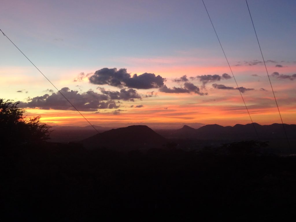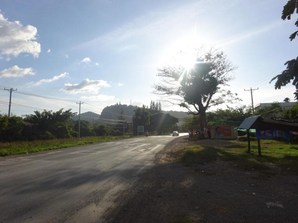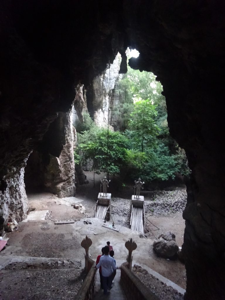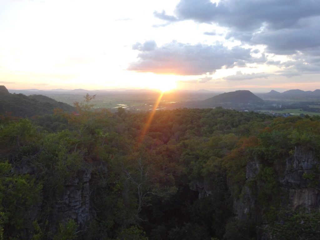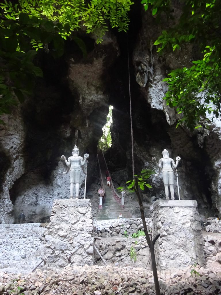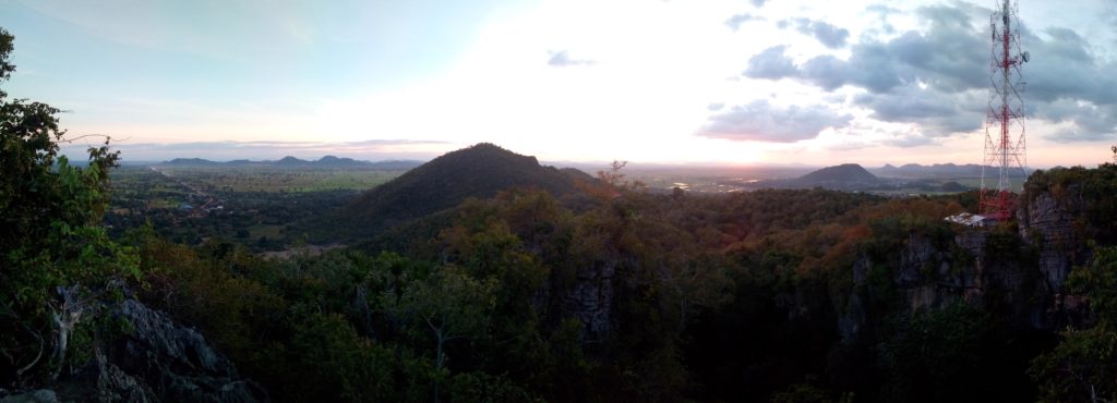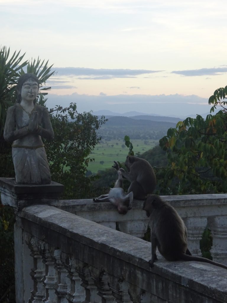 En plus des singes, la colline est réputée pour ses chauves-souris qui s’envolent par milliers chaque jour à la tombée de la nuit depuis une grotte. Malheureusement pour moi je n’ai pas pu assister à ce spectacle que j’ai attendu jusqu’à la tombée de la nuit depuis le haut de la colline, jusqu’à ce que je me rende compte que le point d’observation se situait en fait en bas. Ce n’est que partie remise. Mais il me faut maintenant rentrer avec ma monture. Et avec toute cette attente, il fait maintenant nuit noire. Heureusement j’ai prévu l’éclairage. Les 15 km de route jusqu’à la maison se sont plutôt transformés en une trentaine de kilomètres après avoir fait un détour pas très stratégique pour éviter la grande route où la circulation est trop importante. Mais le trajet retour s’est déroulé sans encombre et mon assiette de riz m’attendait à la maison. Voilà quelques photos de cette petite sortie.
