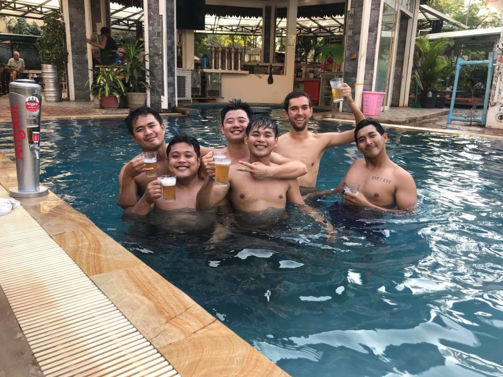 Sur le plan de l’échange culturel, ça a été une expérience incroyable. Le fait de vivre à Battambang, qui est une grande ville mais avec la campagne à deux pas et où les étrangers sont peu nombreux, m’a permis de rencontrer des cambodgiens authentiques et très accueillants. Je me sens vraiment privilégié d’avoir pu intégrer la vie de locaux pendant plusieurs mois, ce qui n’est pas donné aux touristes qui visitent le pays. Les contacts n’ont pas toujours été faciles à cause de la barrière de la langue et de leur timidité pour se lancer à parler anglais mais j’ai apprécié la simplicité que nous avions dans nos échanges. Parfois un simple sourire nous permettait de communiquer et de nous sentir complices. C’est grâce à cela que j’ai pu me sentir rapidement à l’aise et que j’ai pu commencer à créer de belles amitiés.