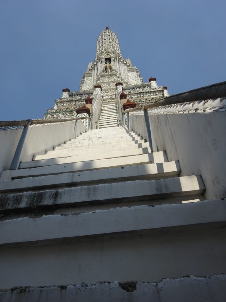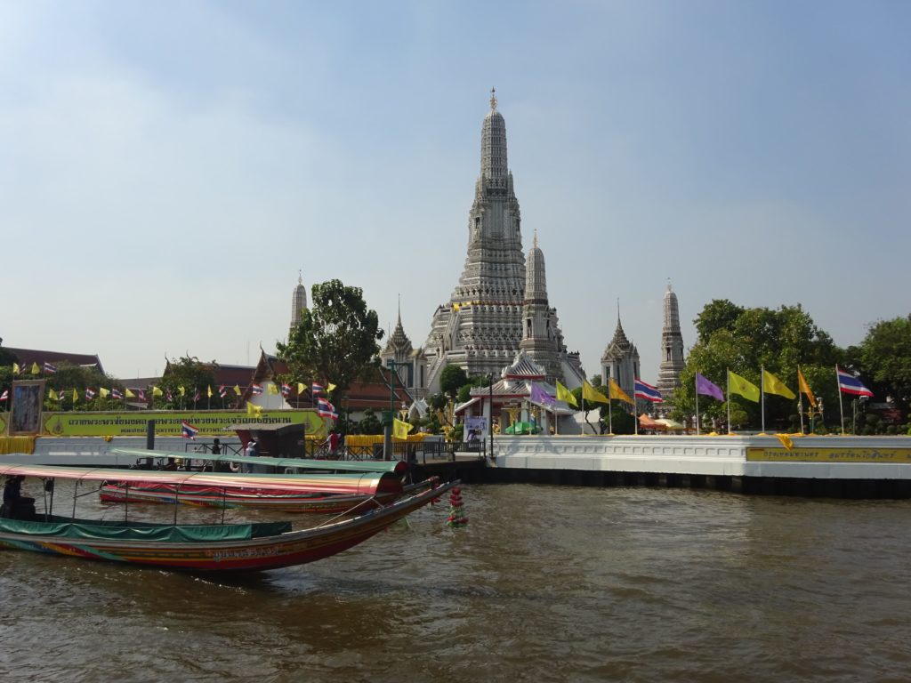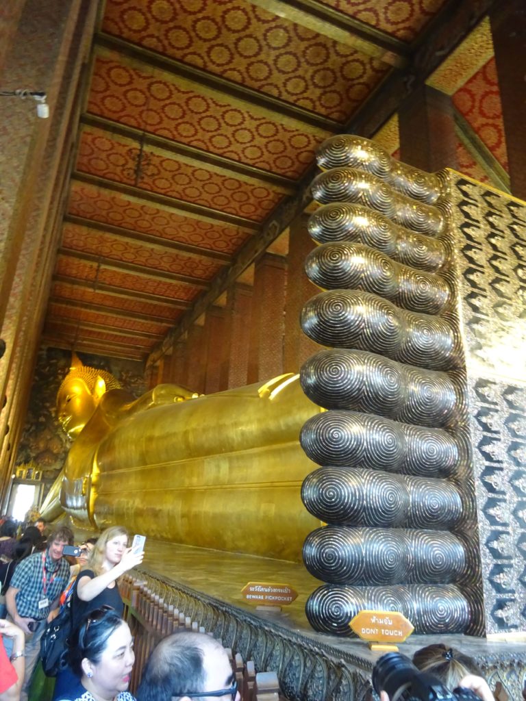 Pour mon premier jour, je me suis rendu dans le centre touristique de la ville où j’ai visité plusieurs temples, notamment le Wat Arun assez atypique de par sa couleur blanche et sa forme en flèche ainsi que le Wat Pho qui abrite un énorme bouddha couché de 43 mètres de long. Je suis également allé au Grand Palais aux dimensions impressionnantes dans l’enceinte duquel se trouve le temple de Wat Phra Kaeo contenant un Bouddha d’émeraude et qui est l’un des lieux sacrés les plus importants de la Thaïlande.