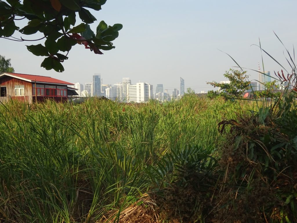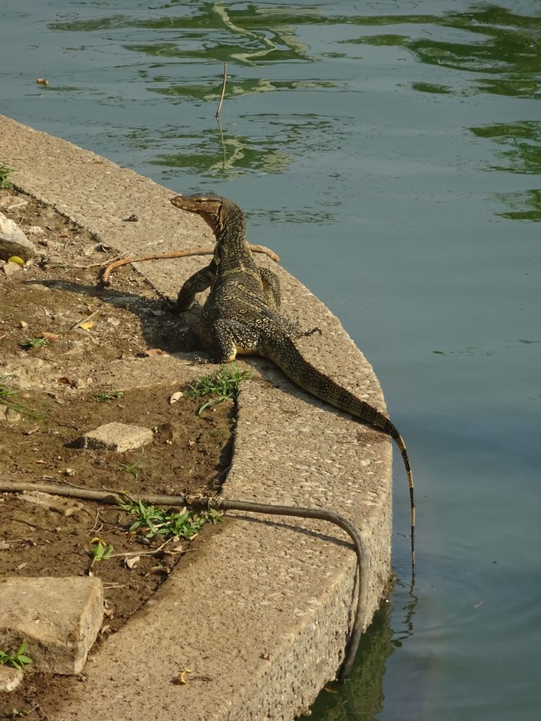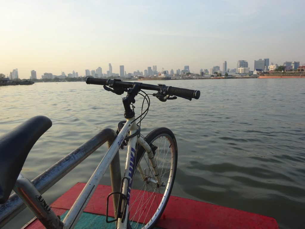Pour mon second jour de visite, j’ai voulu explorer des quartiers un peu plus excentrés au moyen d’un vélo de location. J’ai d’abord essayé d’emprunter des petites rues pour éviter la circulation mais je me suis vite retrouvé sur de grands boulevards où le traffic était très important et rapide. Il a donc fallu que j’appuie fort sur les pédales pour ne pas gêner les véhicules et me faire klaxonner. Un grand moment de sport, avec tous les thaïlandais qui me prenaient pour un fou !