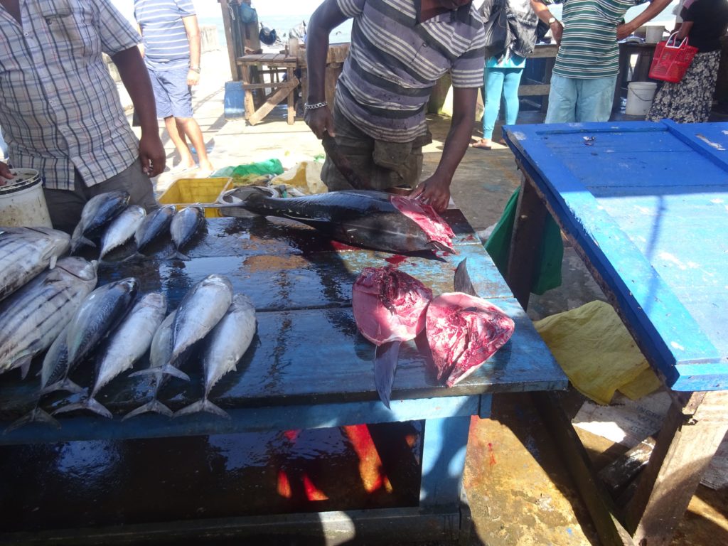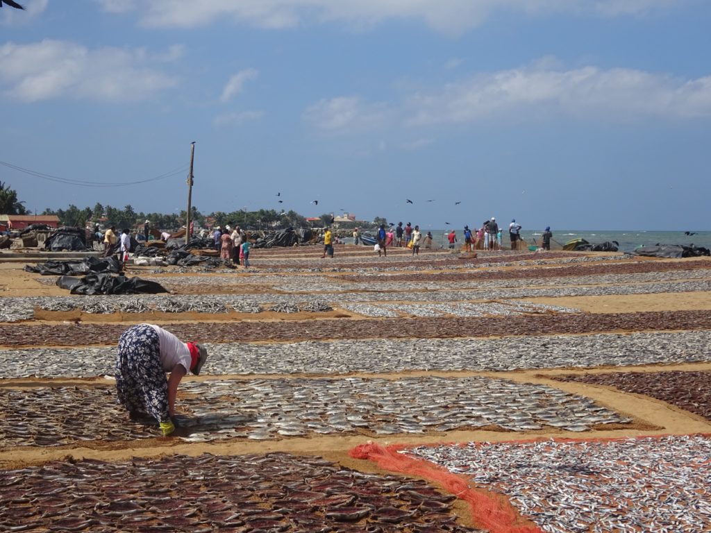 J’ai ensuite pris la direction de Negombo, à une trentaine de kilomètres au nord, réputée pour son marché aux poissons, le plus important du pays. Tous les matins, les bateaux de pêche viennent y livrer leur butin. Les poissons sont alors préparés pour être soit vendus frais, soit séchés au soleil pendant 2 – 3 jours.
