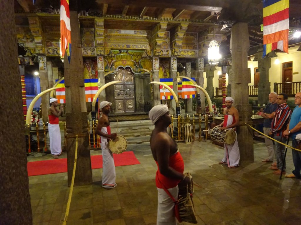 Puis nous sommes arrivés à Kandy, une autre ancienne capitale du Sri Lanka (du XVème au XIXème siècle) et qui est connue pour abriter un des sites les plus sacrés de l’île : le temple de la Dent. Il s’agit d’un temple bouddhiste renfermant une relique de dent de Bouddha qui a été retrouvée après sa crémation. Malheureusement cette dent n’est pas visible pour le public qui ne peut qu’entrapercevoir le reliquaire lors d’une des trois cérémonies quotidiennes qui rassemblent à chaque fois des centaines de fidèles.