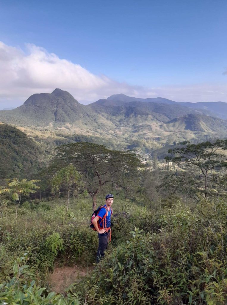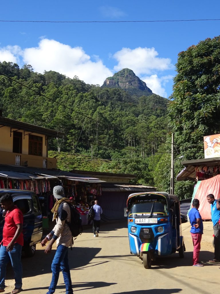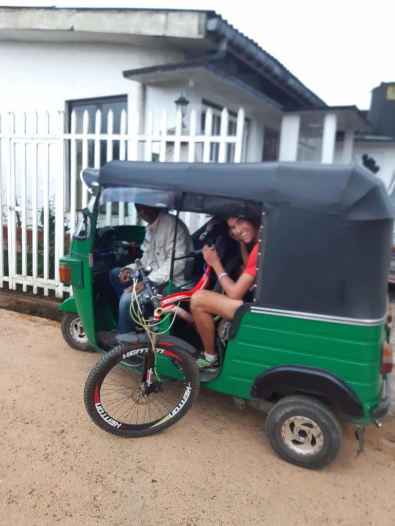 - Notre troisième et dernière étape était un sommet offrant un superbe point de vue sur la région et que l’on pouvait atteindre à vélo par un chemin escarpé. Malheureusement, mon VTT a rendu l’âme peu avant le sommet lorsque j’ai cassé le corps de roue libre dans une pente raide. J’ai tout de même pu finir à pieds puis redescendre tant bien que mal. Mais une fois arrivé en bas, il restait 3-4 kilomètres à faire pour rallier la maison d’hôte ce qui m’était impossible à réaliser car le système de transmission du vélo ne fonctionnait pas. J’ai donc fait appel à un tuk tuk pour me ramener avec mon vélo à la maison. Une scène qui a surpris plus d’un Sri Lankais !
