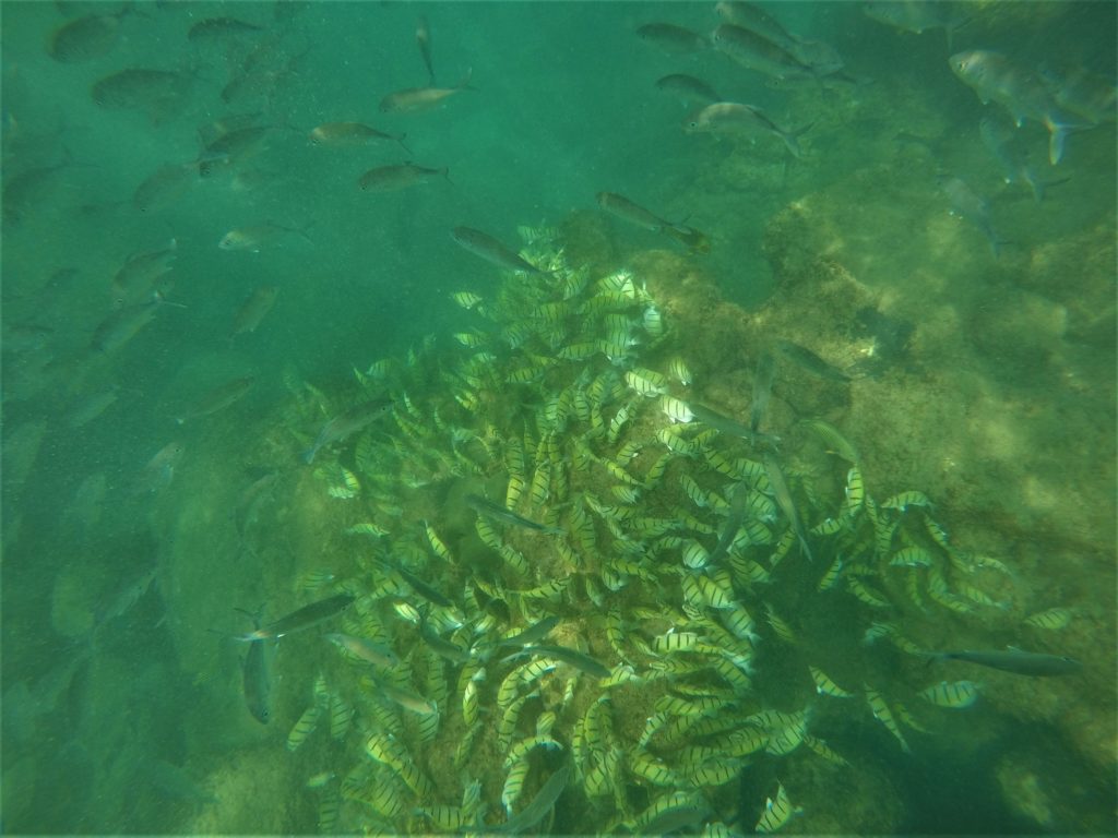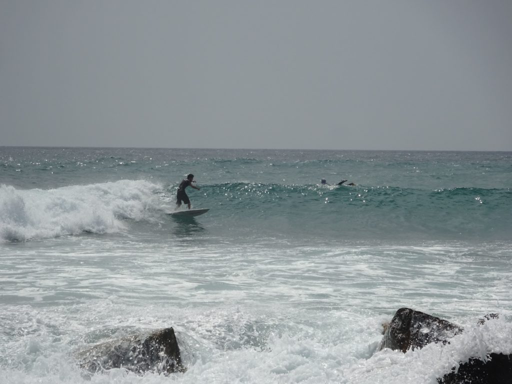 Mais en plus d’être un spot de surf génial, l’endroit était également très riche en faune aquatique. J’y ai vu plusieurs fois des tortues pointer leur tête à la surface de l’eau à quelques mètres de ma planche. En prenant une vague, j’ai même aperçu (et je suis sûr de moi) un petit requin d’une quarantaine de centimètres environ qui nageait sous ma planche. Je vous jure ! Mais la fois où j’ai le plus halluciné ce fut pour mon dernier jour où j’ai décidé de troquer ma planche pour des lunettes de piscine afin d’explorer les fonds marins du spot que je surfais depuis près d’une semaine. Et quelle ne fut pas ma surprise quand j’ai réalisé qu’à quelques centimètres en dessous des surfeurs vivaient une population impressionnante de poissons. J’ai observé des bancs de centaines et de centaines de poissons. Malheureusement ni tortue, ni requin pendant ma session de snorkeling.