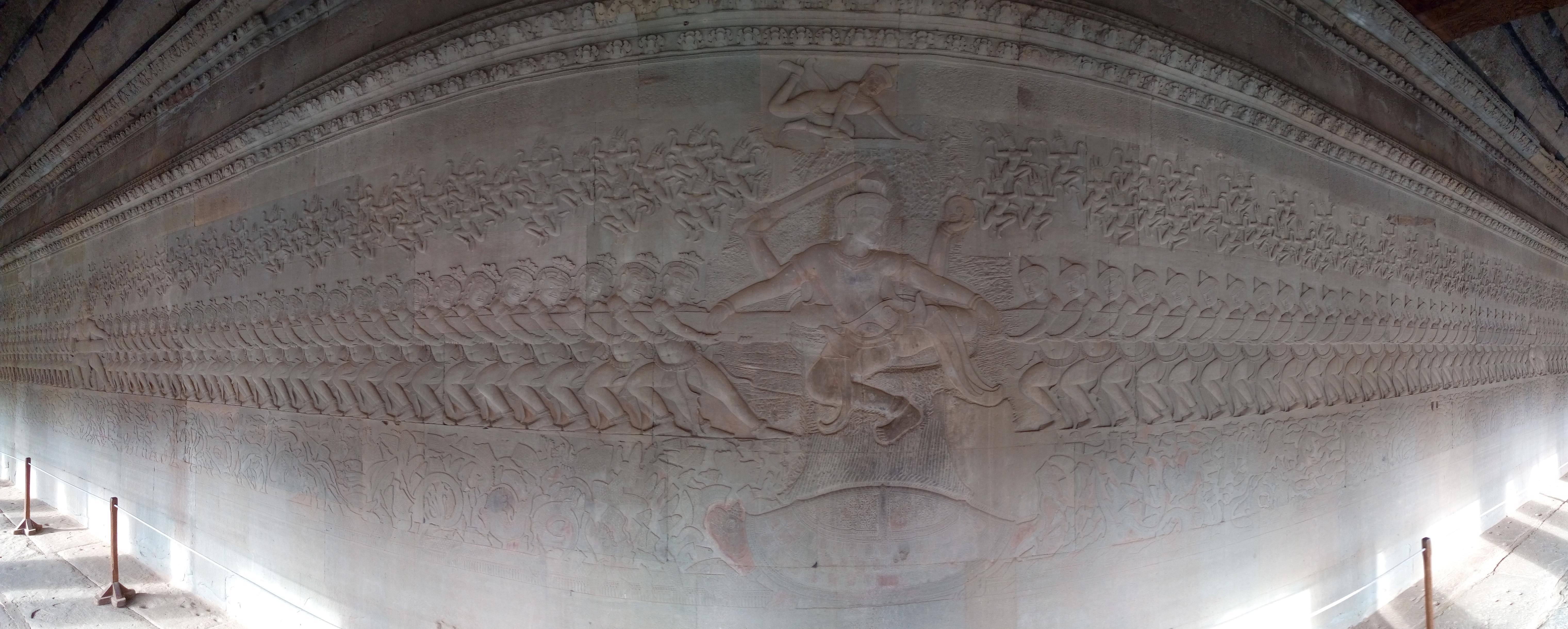 Bas-relief d’Angkor Vat représentant la scène du barattage de la mer de lait.