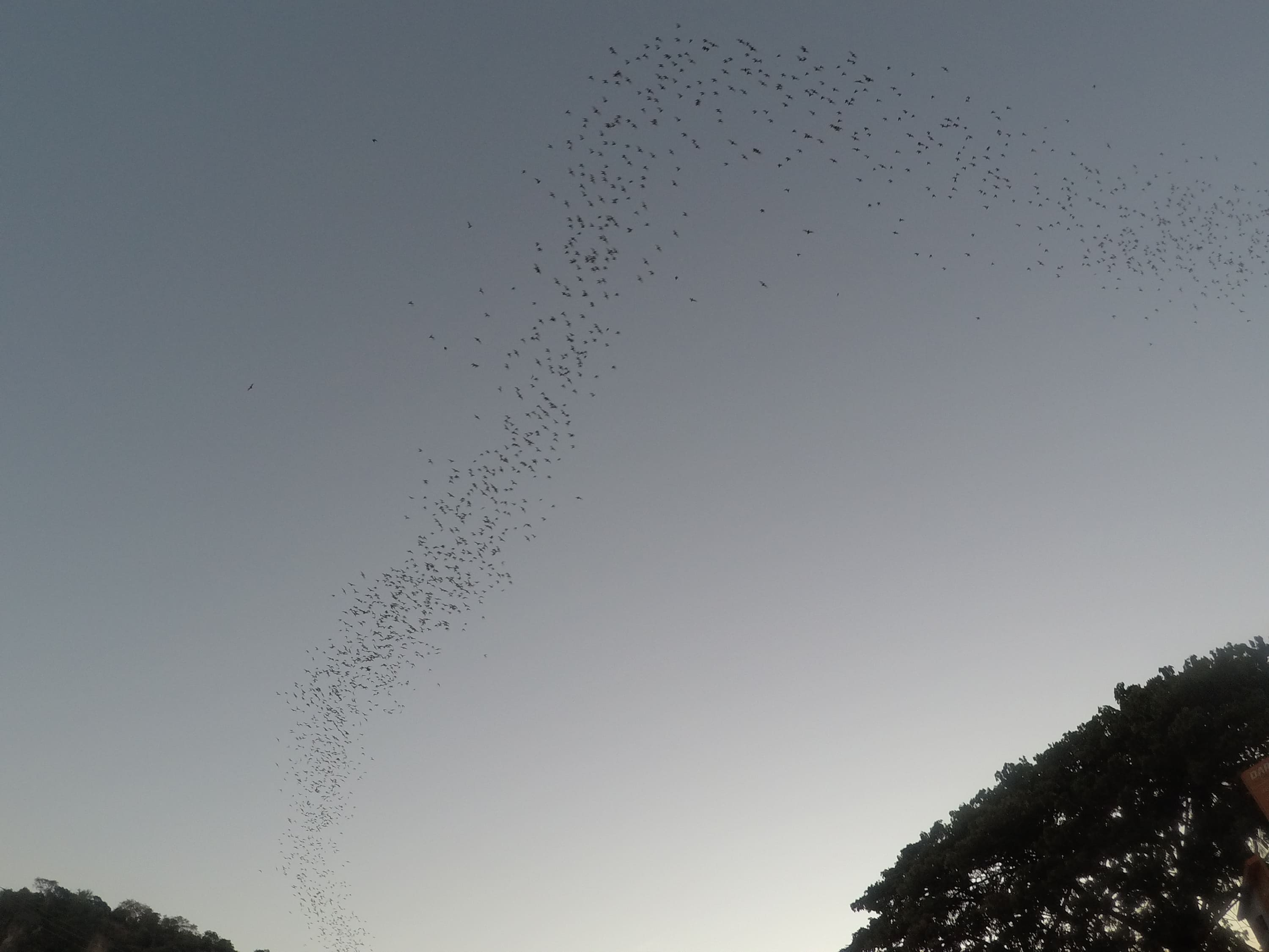 Je suis retourné à Sampov Mountain pour assister au départ des chauve-souris à la tombée de la nuit que j’avais raté la fois précédente. Un spectacle impressionnant : pendant plus d’une demi-heure un flot continu de chauve-souris s’échappe d’une grotte de la montagne. Leur nombre se compterait en millions !