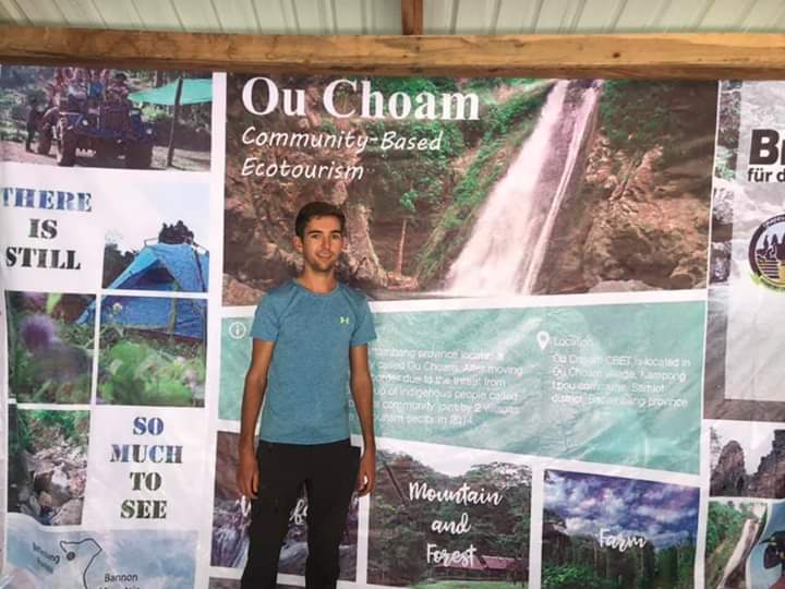 Pose devant une affiche publicitaire pour le site d’écotourisme d’Ochoam (qui peut s’écrire Ou Choam aussi)