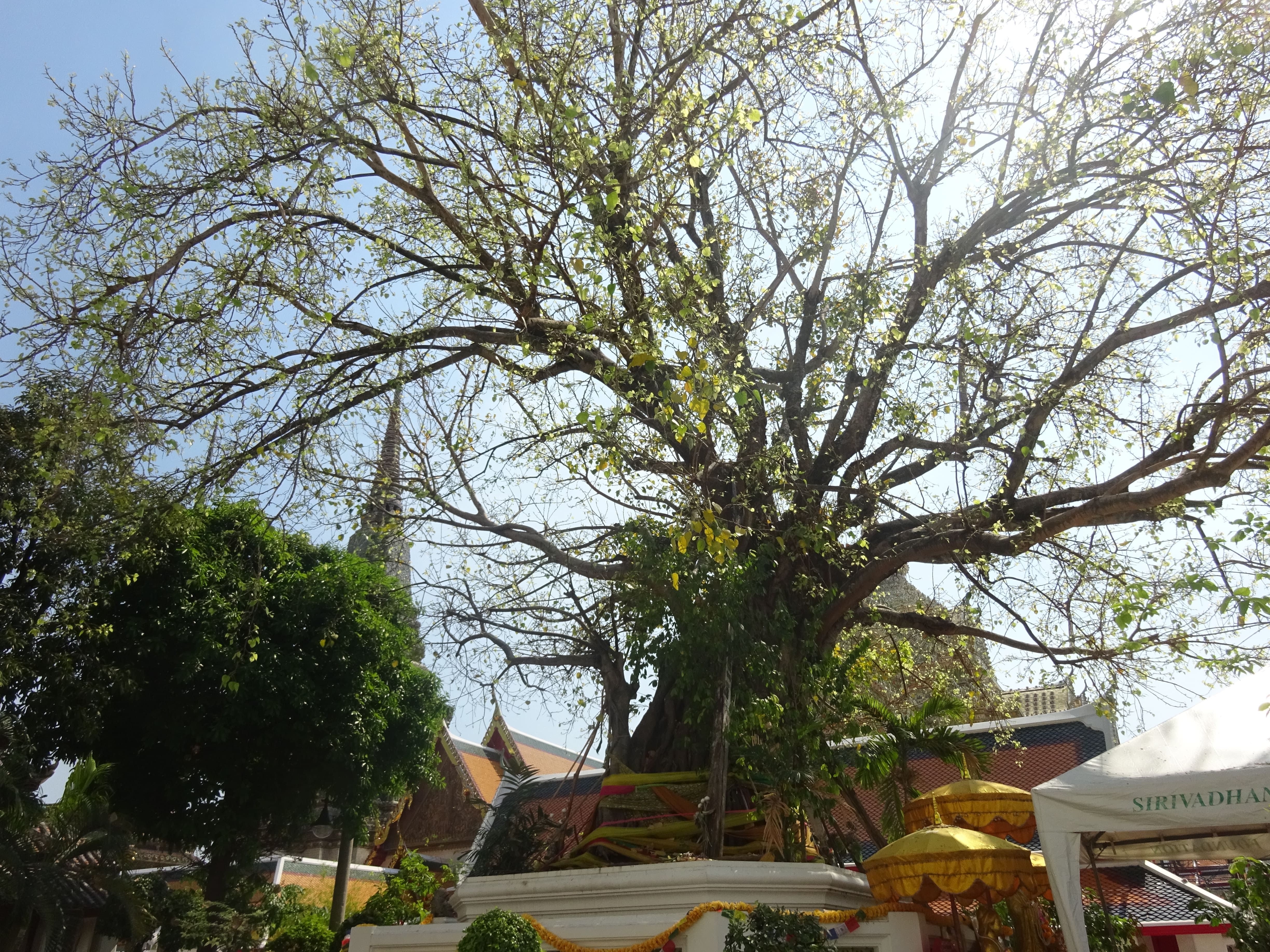Un arbre bodhi, arbre sous lequel Bouddha aurait atteint l’illumination. On rencontre beaucoup de ces arbres qui appartiennent tous à la même espèce dans les pays bouddhistes. L’arbre bodhi original se trouve en Inde.