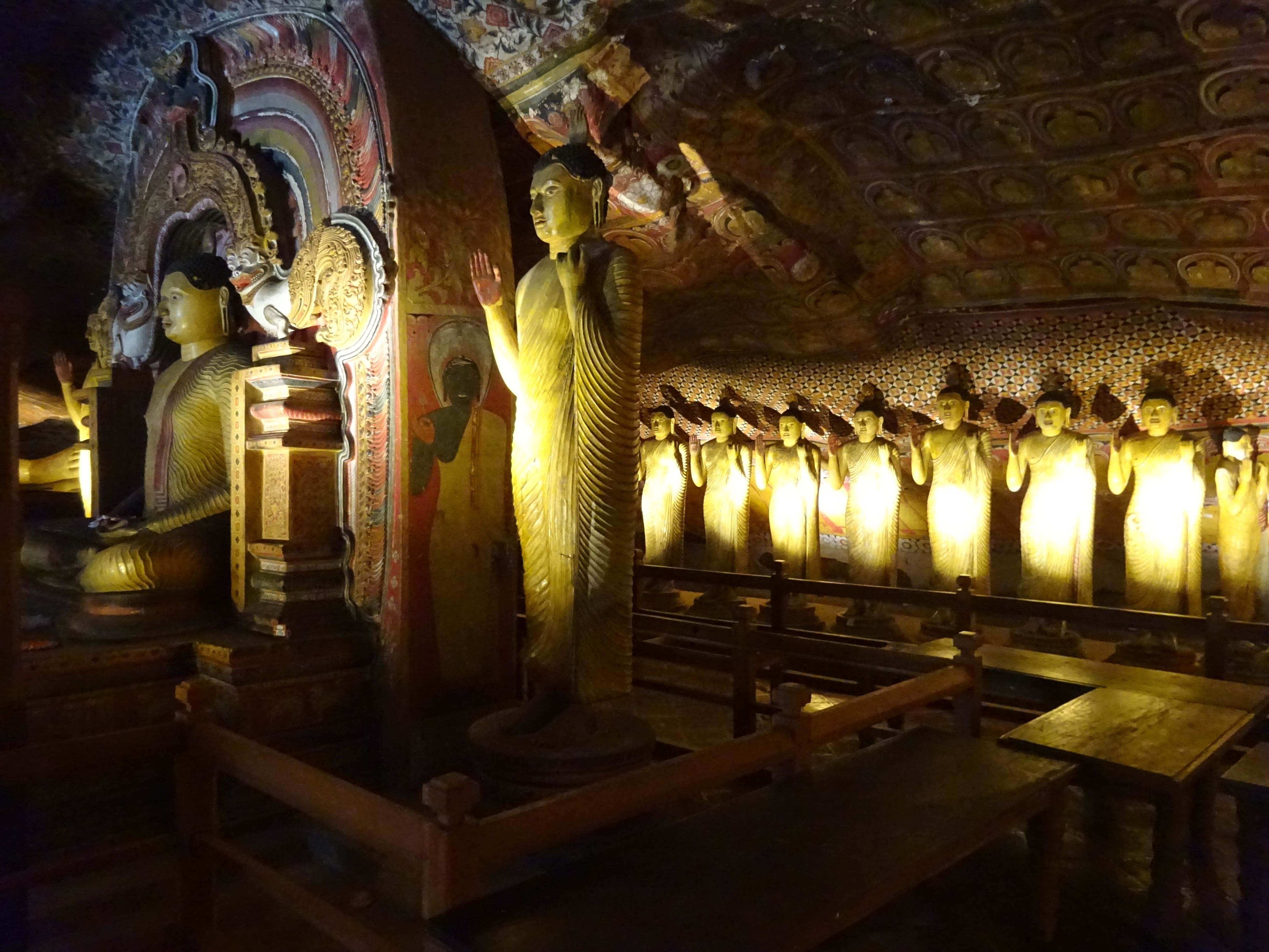 Le Rock Temple à Dambulla est constitué de plusieurs grottes comme celle-ci qui abritent des dizaines de représentations de Bouddha.