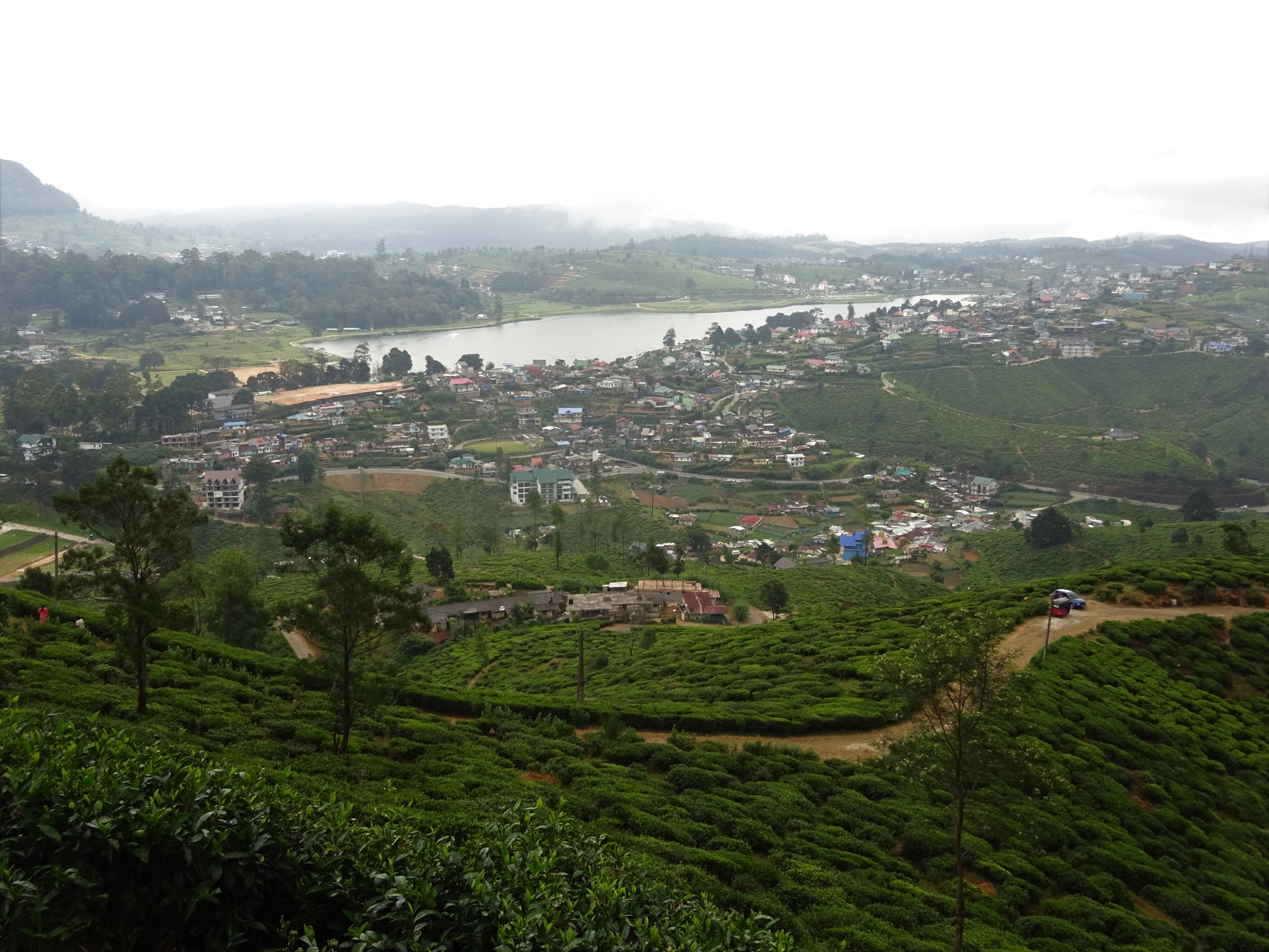 Vue depuis le sommet sur Nuwara Eliya et le lac Grégory