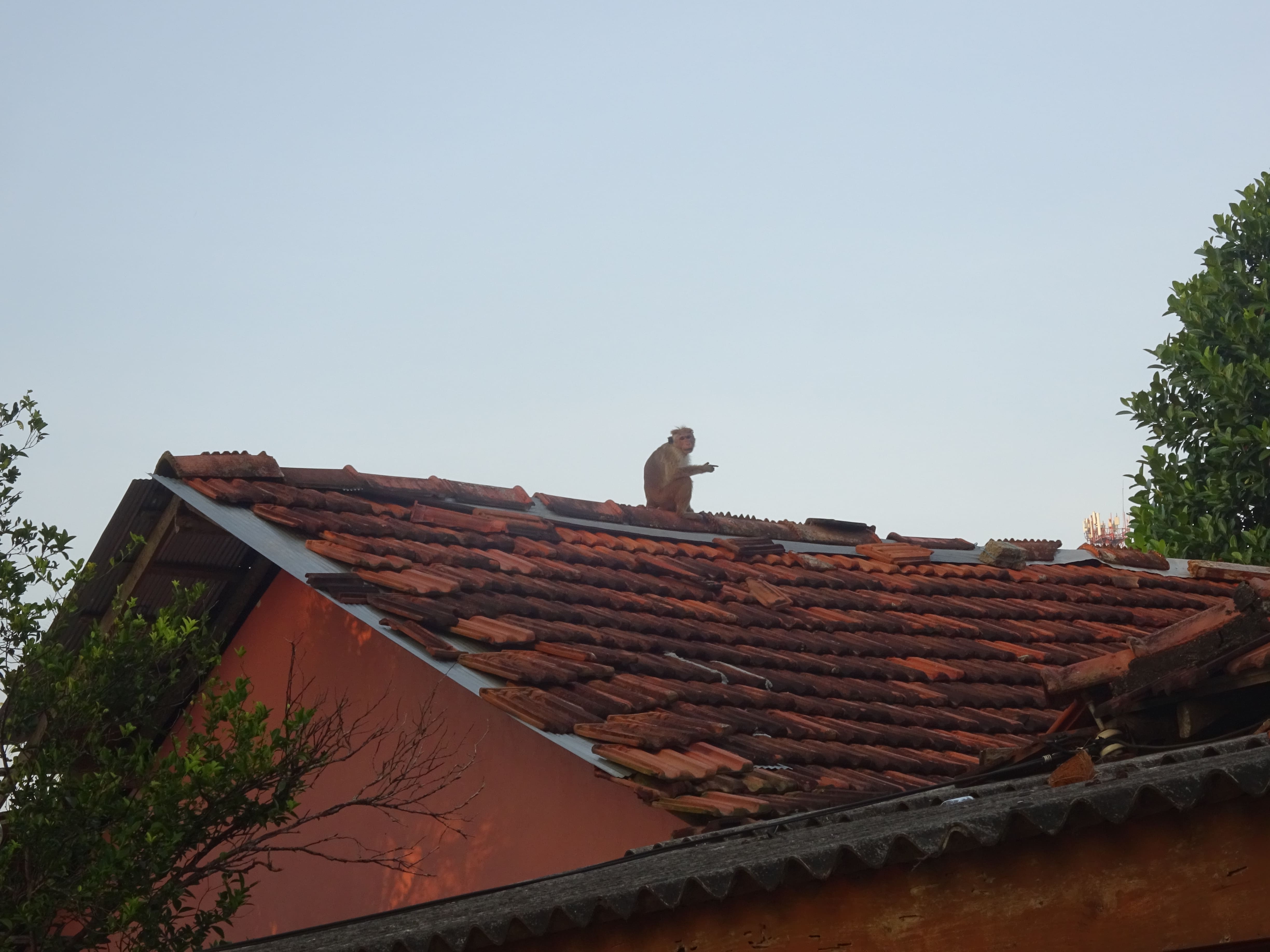 Un singe sur le toit de ma maison d’hôte.