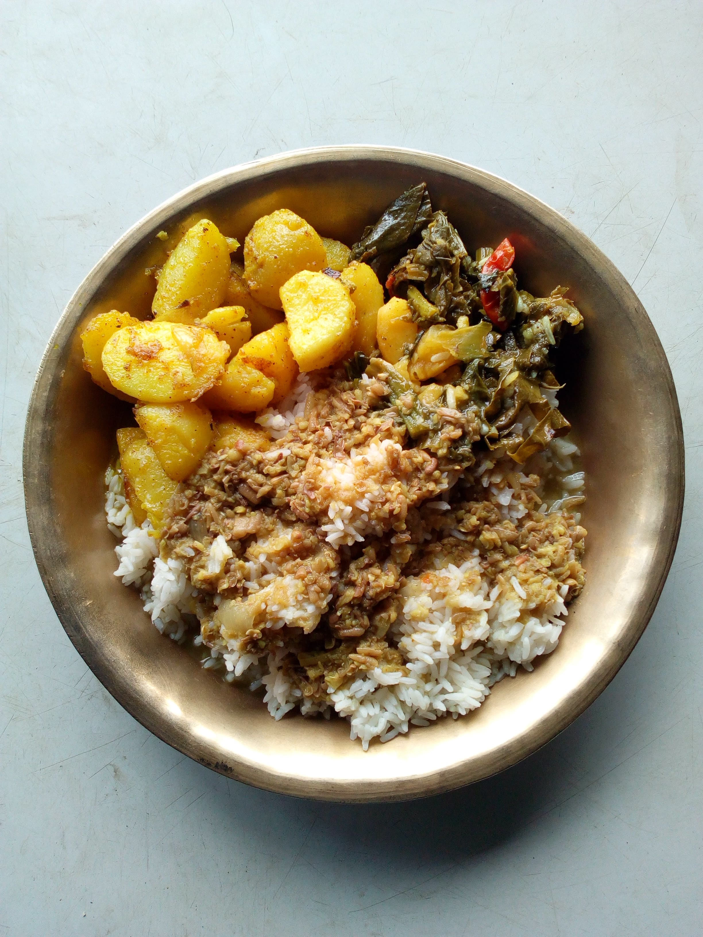 Voilà ce que je mange matin et soir, le dal bhat. La recette est simple :