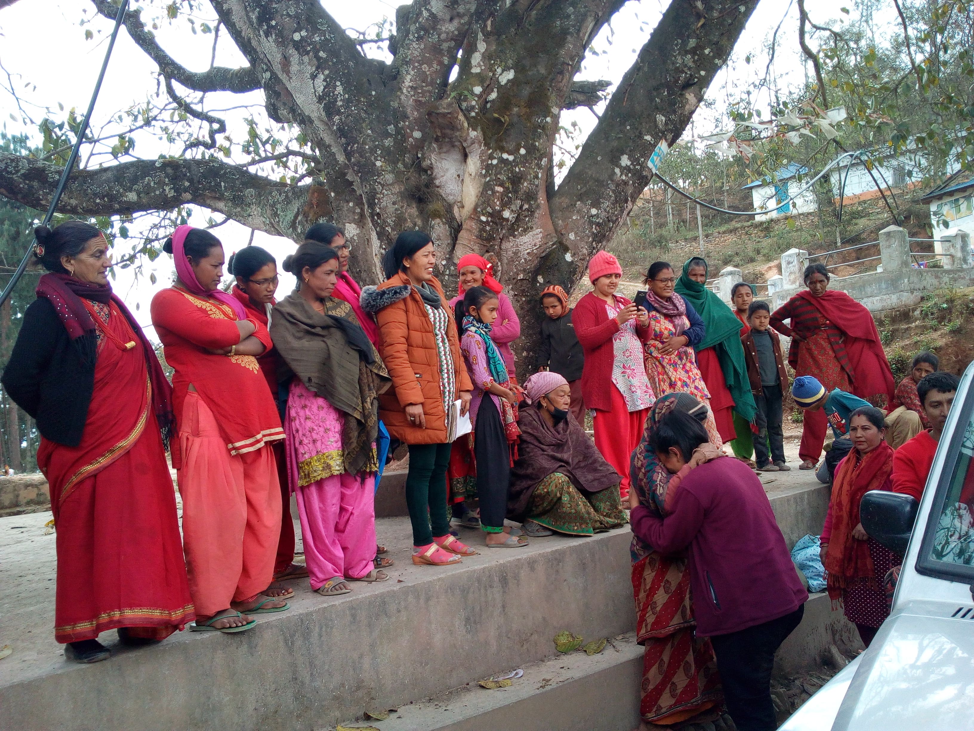 Les femmes du village se sont spontanément rassemblées sur la place du village pour dire au revoir aux volontaires.