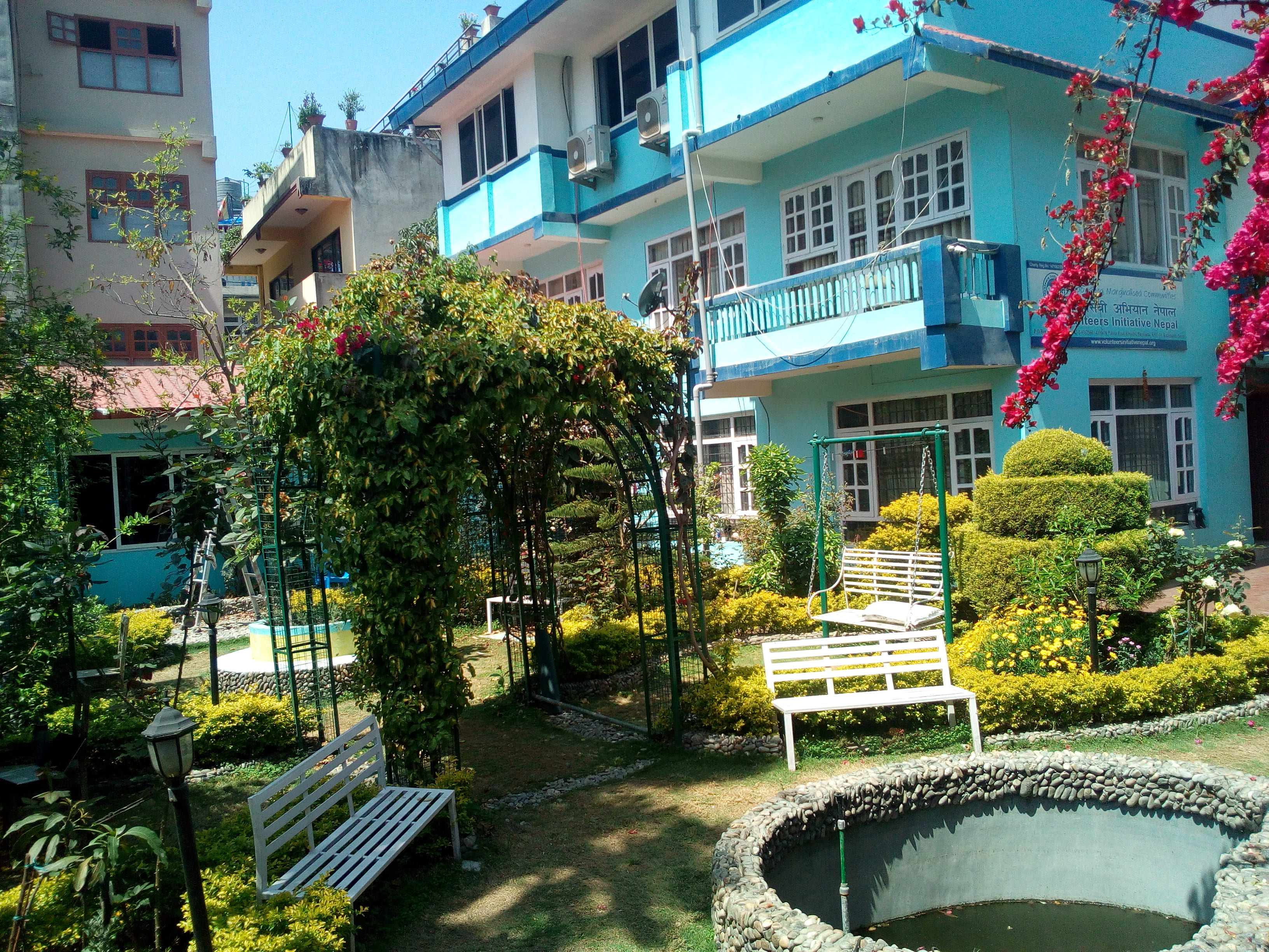 718 ← Précédent Suivant → Le bureau de VIN et son jardin où j’ai tranquillement patienté pendant une semaine pour un vol de rapatriement.