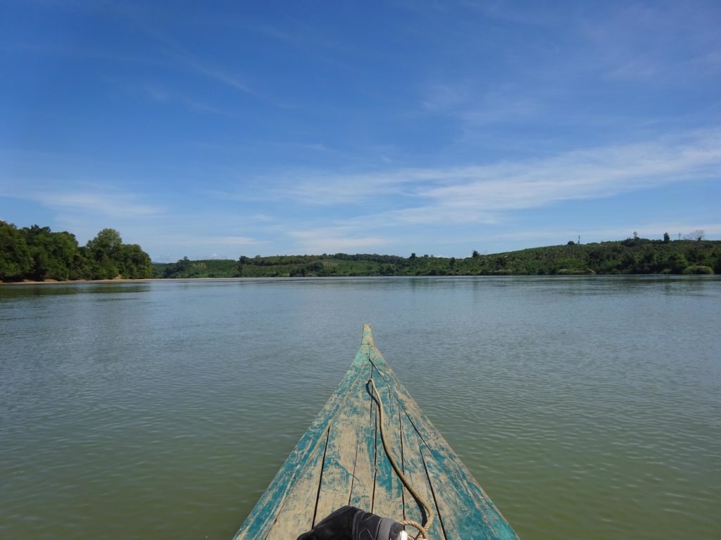 Comme pour tout bon pèlerinage qui se respecte, je me devais de rendre le voyage mémorable. J’ai donc décidé de m’y rendre en bateau depuis Battambang. Un trajet certes deux fois plus long qu’en bus mais qui, d’après ce que j’ai entendu, vaut le détour. Le parcours emprunte la rivière Sangker qui passe à Battambang et se jette dans le lac Tonlé Sap qui n’est qu’à quelques encablures de Siem Reap, la base arrière des temples d’Angkor. La durée du trajet dépend beaucoup de la saison : comme nous étions au début de la saison sèche, le niveau d’eau était raisonnablement bas ce qui permettait d’effectuer le voyage en environ 7 heures.