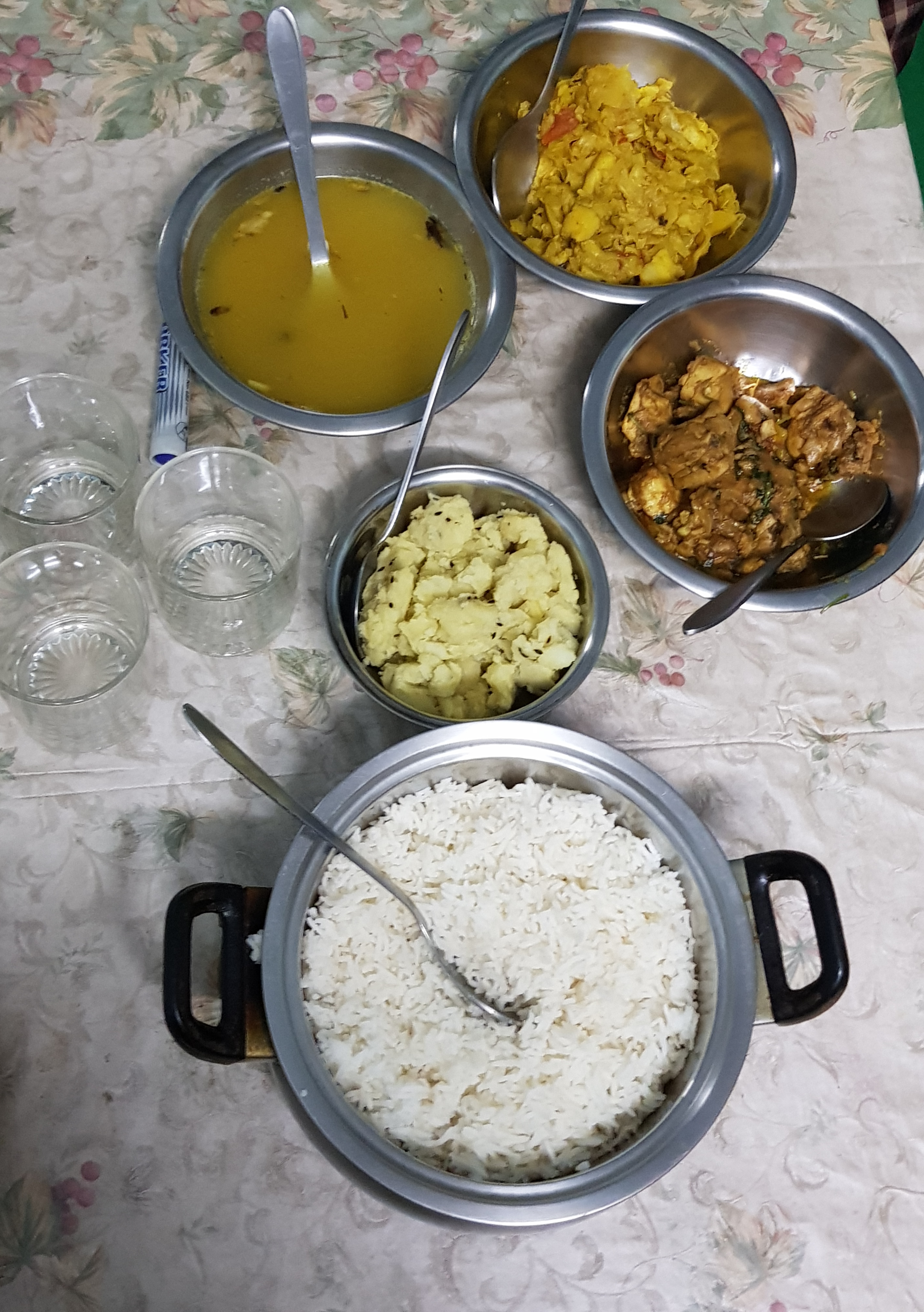 En parlant de nourriture, au Népal le plat national est le dal bath qui est un plat végétarien de riz blanc accompagné d’un bouillon de lentilles et d’un curry de légumes en général assez épicé.