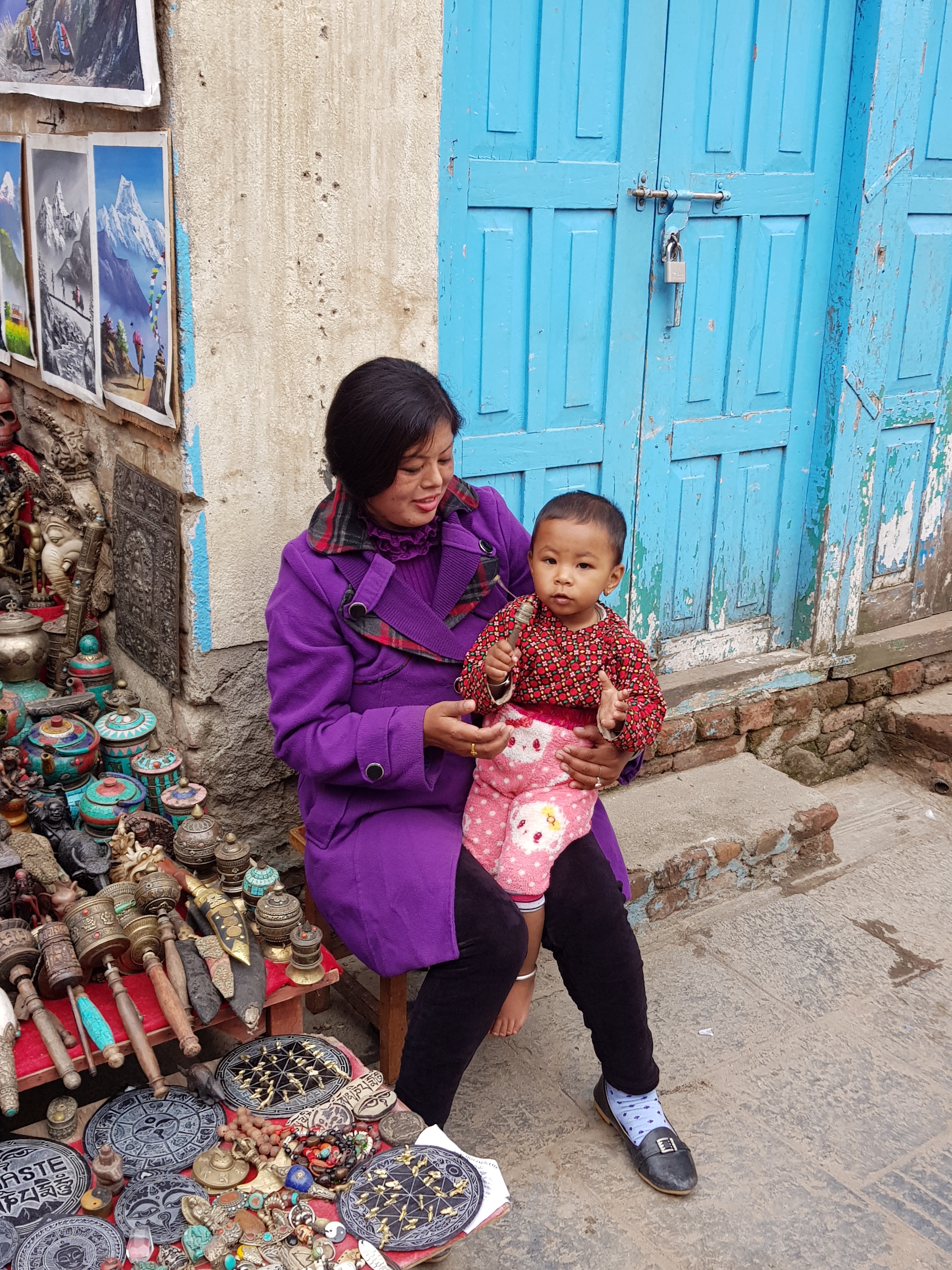 Katmandou c’est aussi et surtout des personnes très accueillantes, avec qui on se sent de suite à l’aise, des vaches sacrées qui gambadent un peu partout, des enfants souriants qui jouent et courent dans la rue etant les plus heureux du monde de parler anglais avec toi, des tous petits commerces qui vendent tout et n’importe quoi… bref un beau bordel mais qui a énormément de charme!