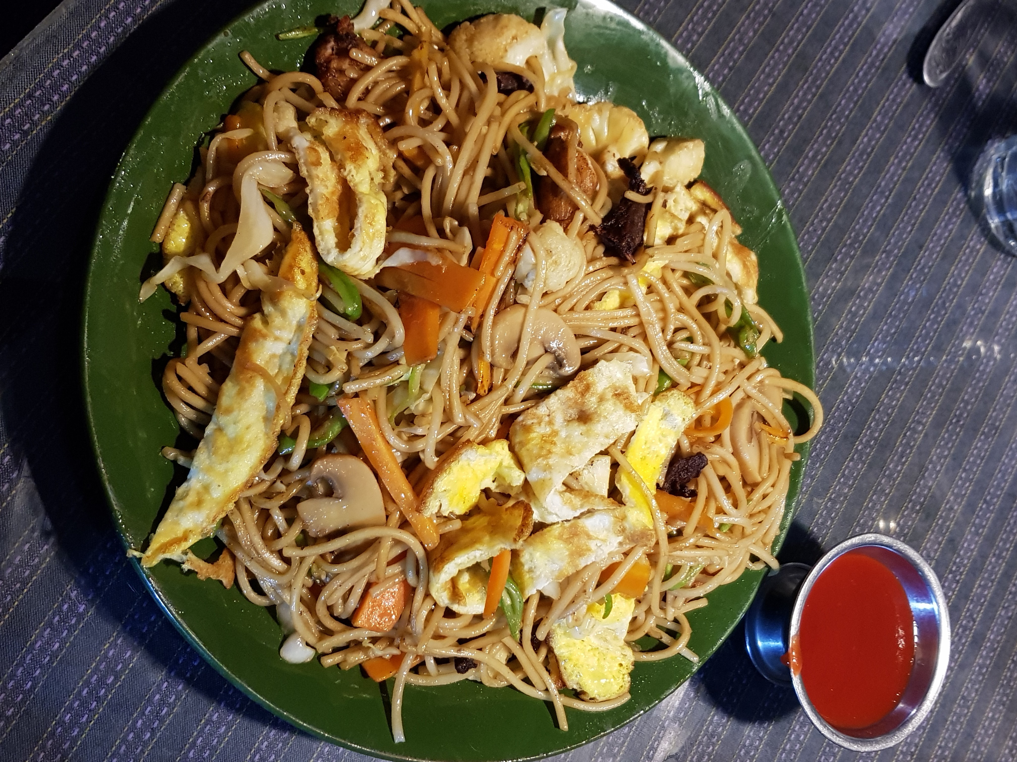 Sinon nous goûtons un peu tout : chowmien (plat chinois de nouilles, légumes, oeuf…) délicieux!