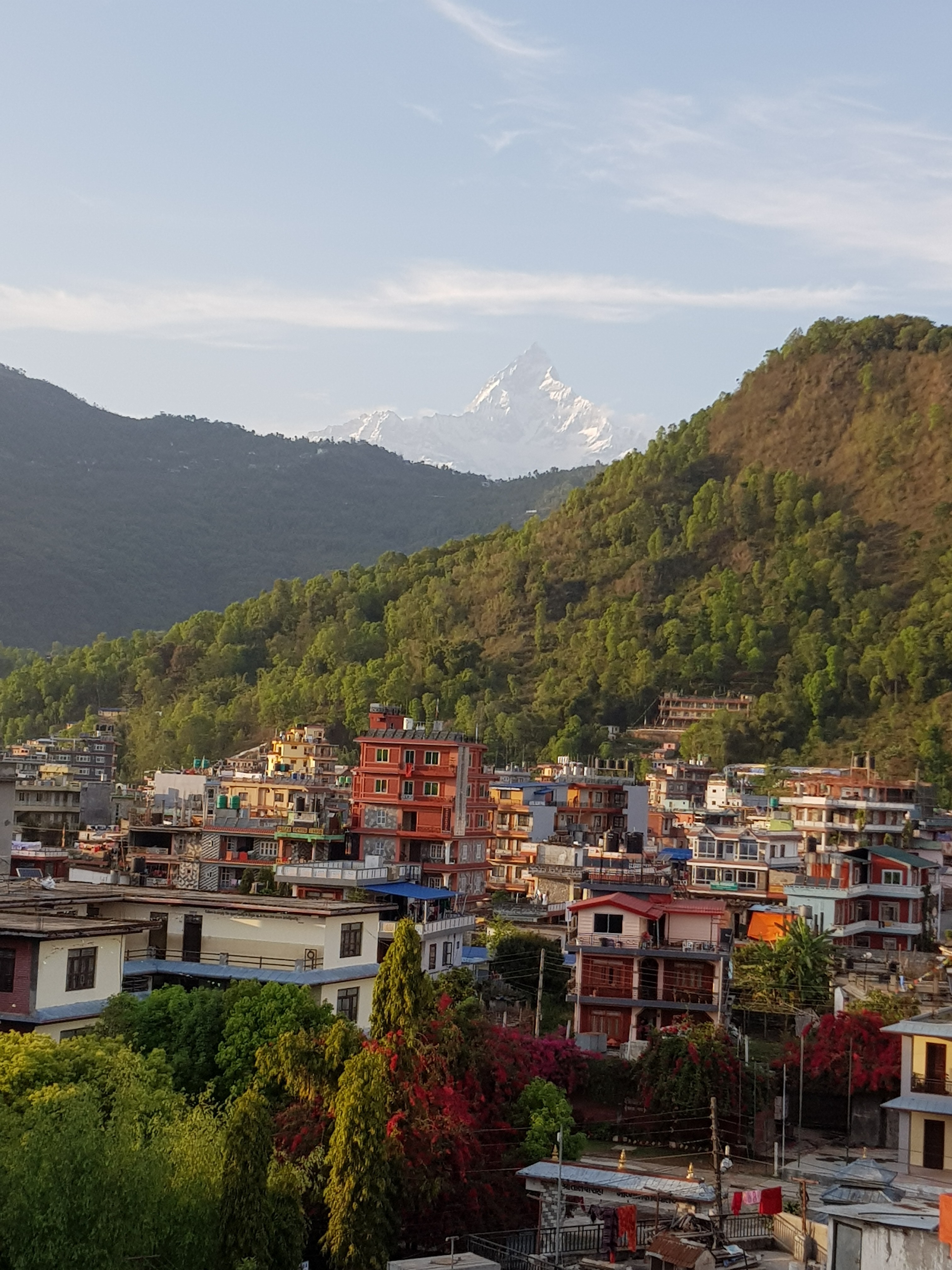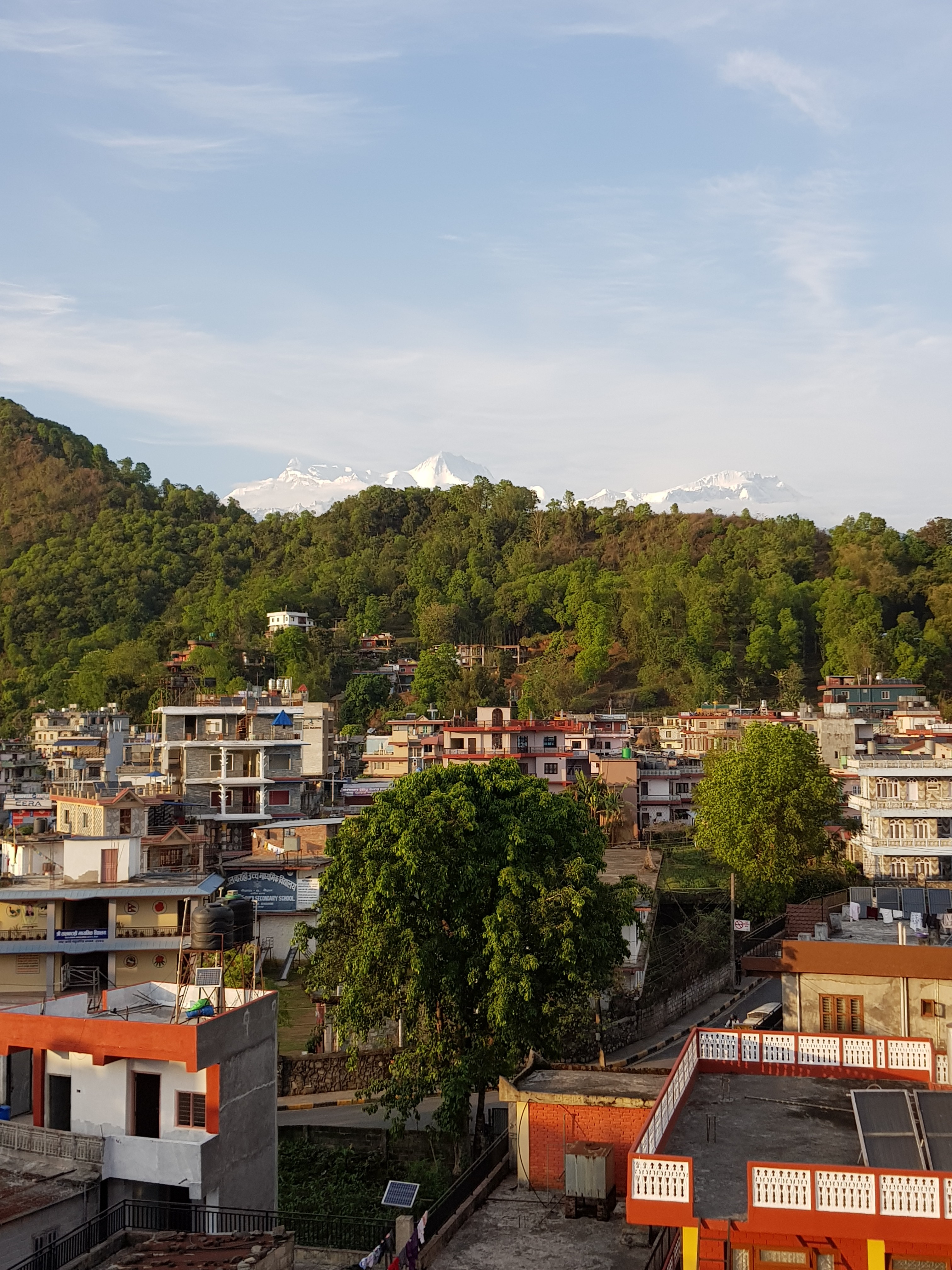 Et en parlant de montagnes, la première chose que nous apercevons en arrivant à Pokhara est la chaine de montagne des Annapurnas. Sublime! Je monte dès notre arrivée sur le toit pour mieux les apercevoir, indescriptible: