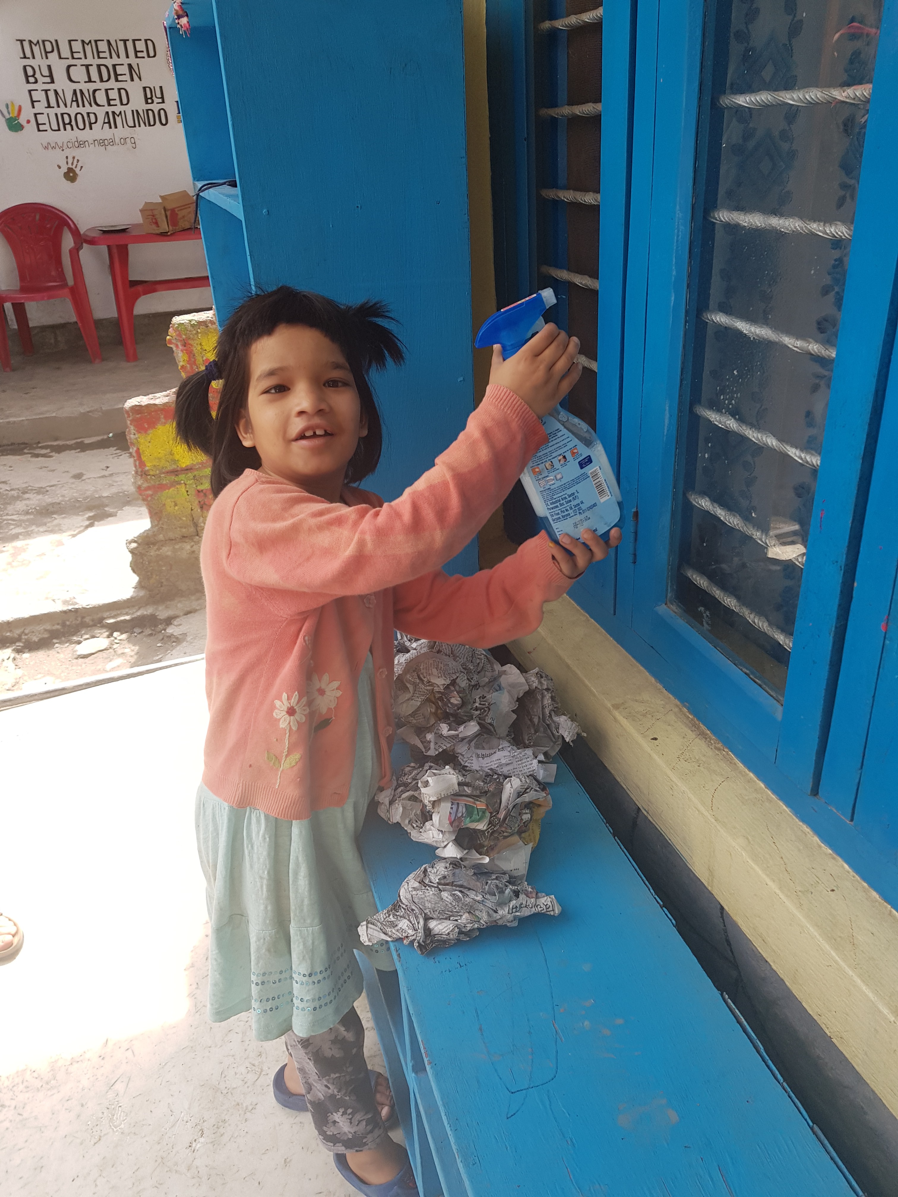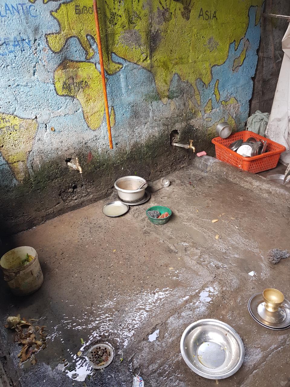 La cuisine de l’orphelinat est assez précaire, voilà par exemple l’endroit où chacun lave sa vaisselle avec un peu de savon et un semblant d’éponge et où les enfants se lavent le visage après avoir mangé. Au début ça fait clairement peur (l’eau n’est pas potable au Népal) mais on s’y habitue, comme tout!