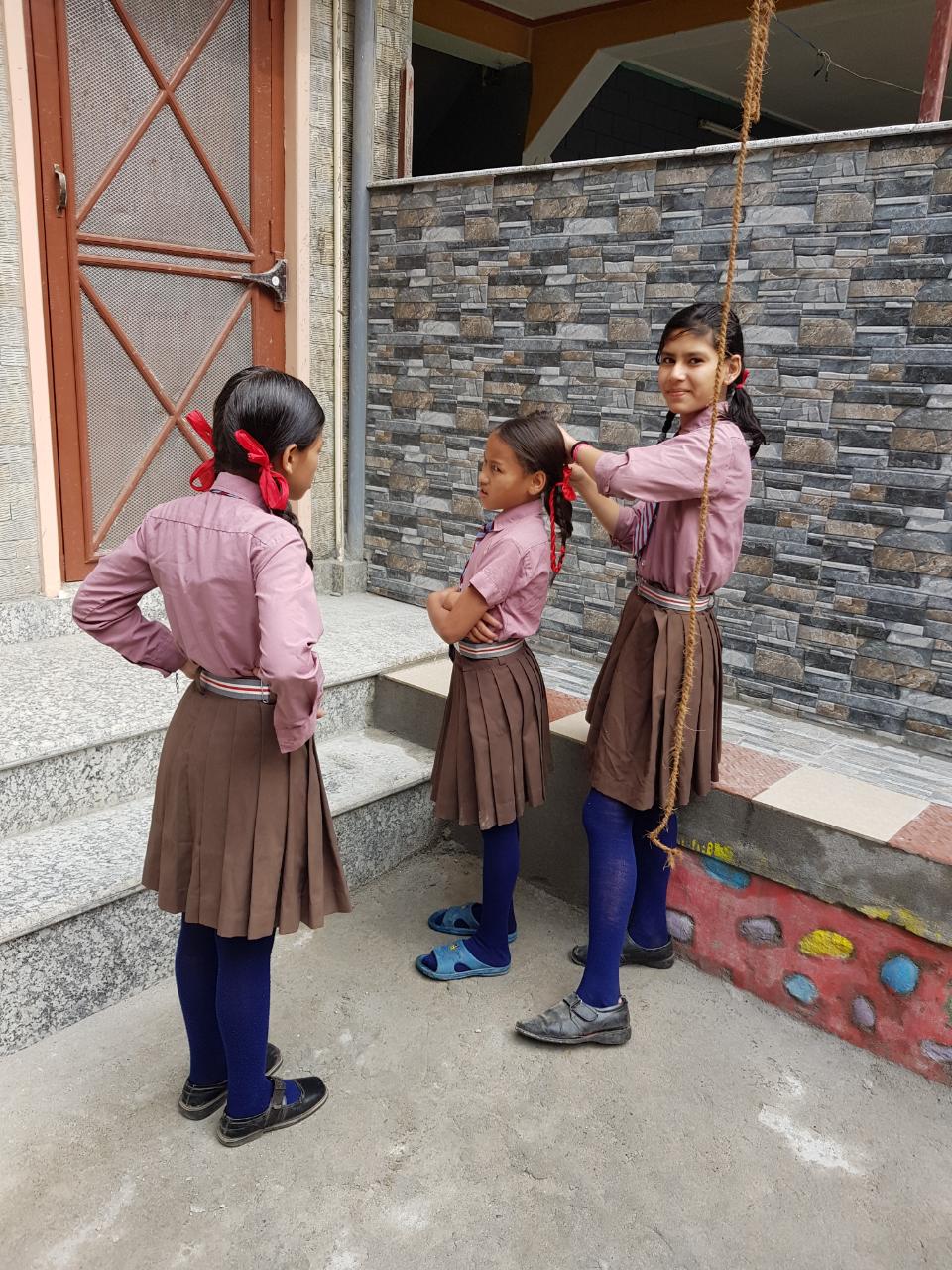 Anjeli peignant les autres filles pour le jour de reprise d’école